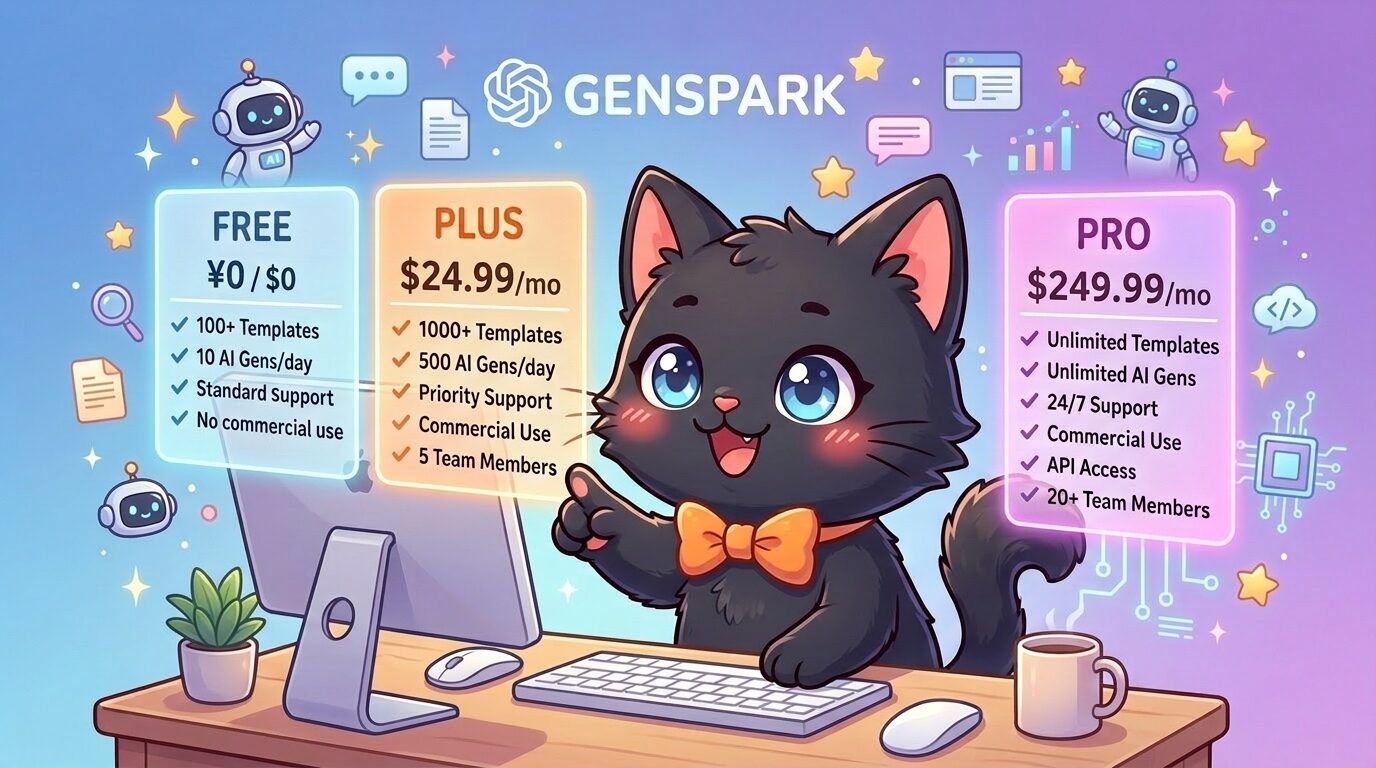 【2026年最新】Gensparkの料金プランを徹底解説|無料・Plus・Proの違いとおすすめの選び方🐱